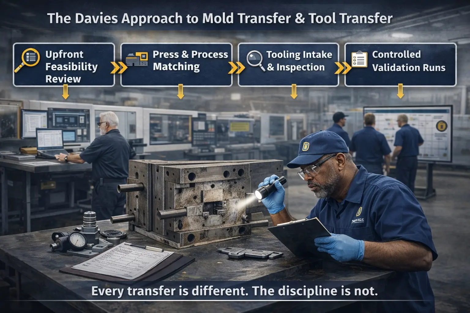 A proven mold transfer and tool transfer process without downtime, surprises, or quality drift.